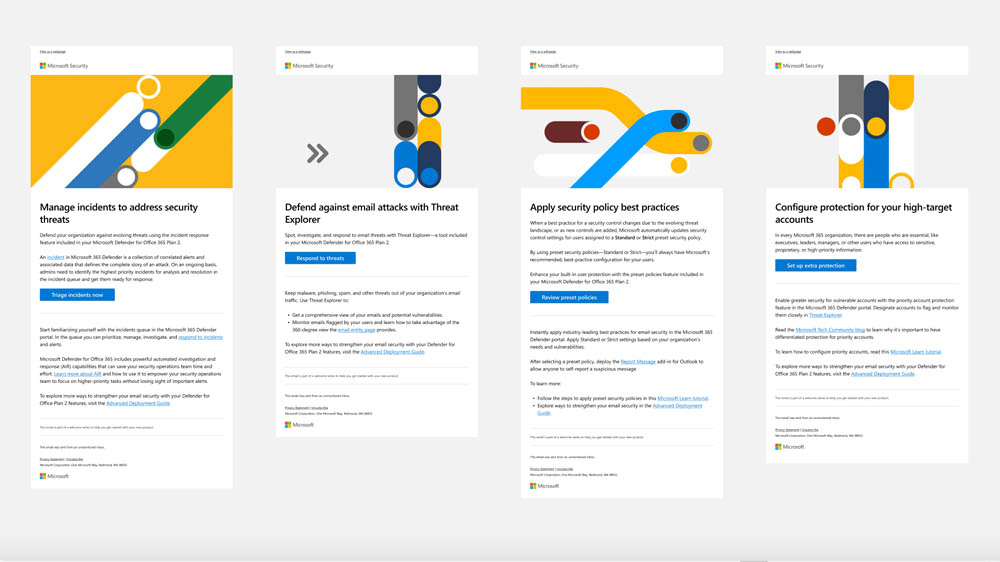 My last Microsoft contract was with Microsoft Cloud Marketing Group creating corporate emails. This process involves creating emails series from preexisting modules built in Figma or Adobe XD, and populating content while honoring brand guidelines for design and content.